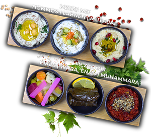 W centrum naszej kuchni znajduje się mezze – bogaty wybór małych dań, które razem tworzą niepowtarzalną kompozycję smaków. Na stole znajdziesz hommos, mutabal, falafel, tabouli i soczyste grillowane mięsa.